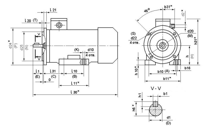 Габаритные размеры электродвигателя 5А50МА2 IM 2081