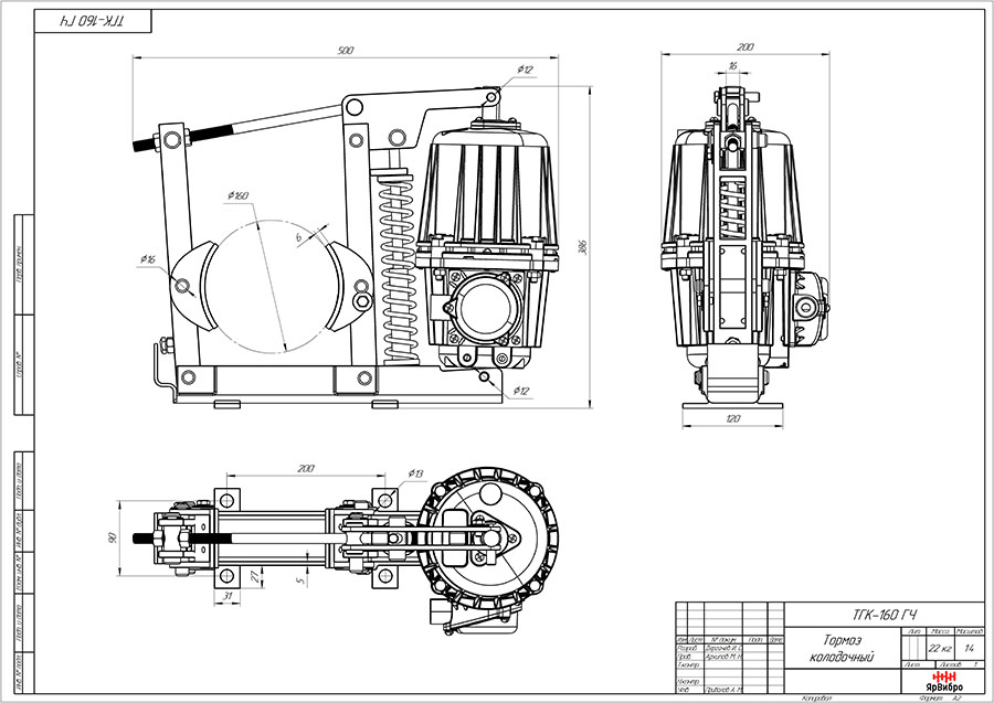 Тормоз колодочный в сборе с толкателем ТКГ-160 отзывы