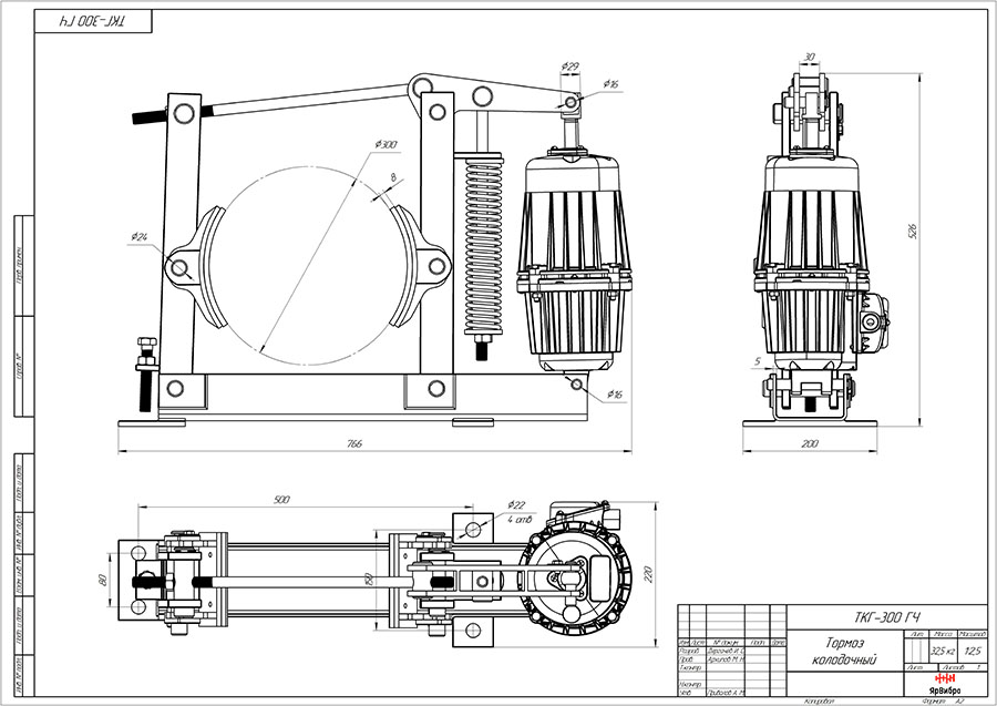 Технические характеристики колодочного тормоза ТКГ-300