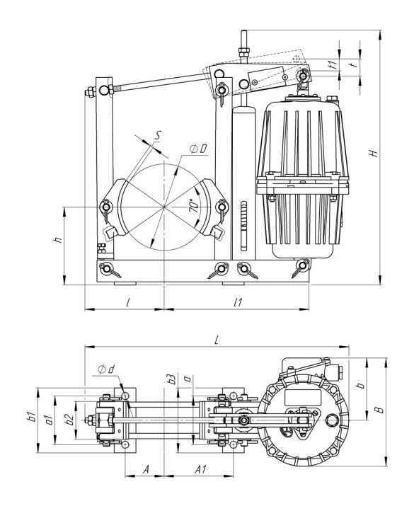 Габаритные размеры тормоза ТКГ-500