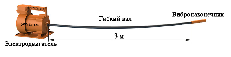 Вибратор для бетона ЭПК-1800 (220 В, вибронаконечник 76 мм) с гибким валом 3 м