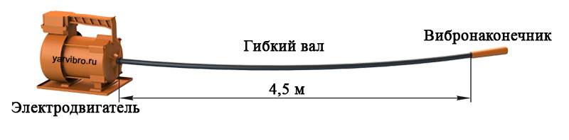 Вибратор для бетона ЭПК-1800 (220 В, вибронаконечник 76 мм) с гибким валом 4,5 м